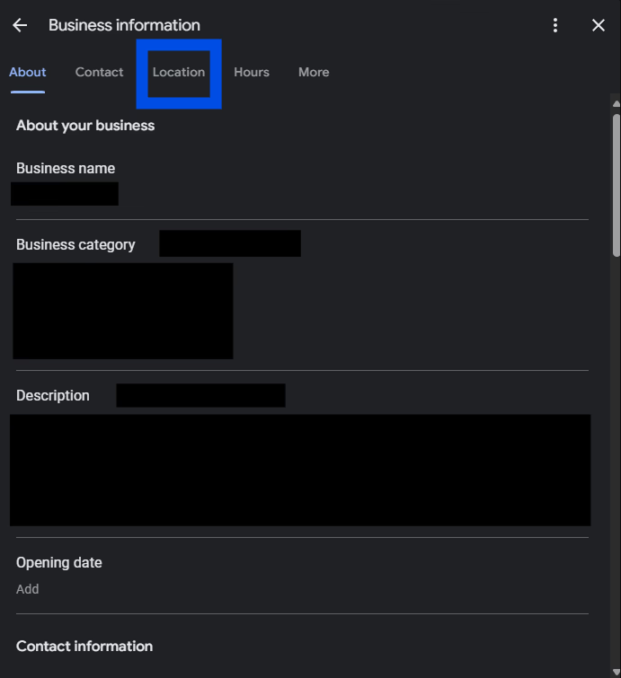 – For service-area businesses, choose the option to hide your address if you don’t have a storefront.