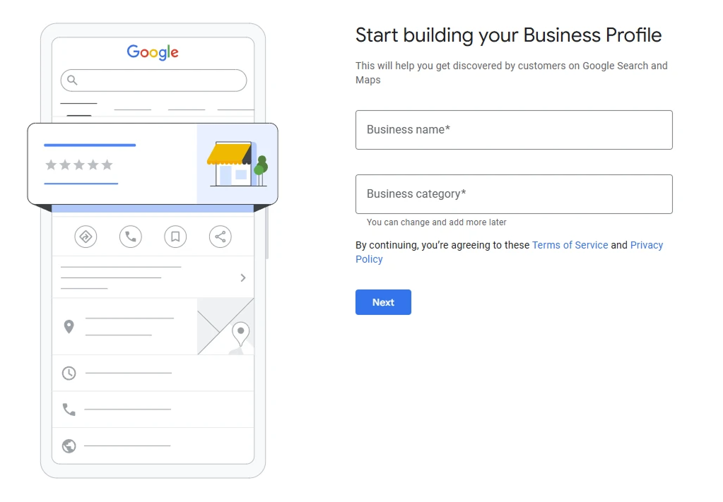 2. Enter Your Business Name: Type the name of your business into the provided field and click “Next.”